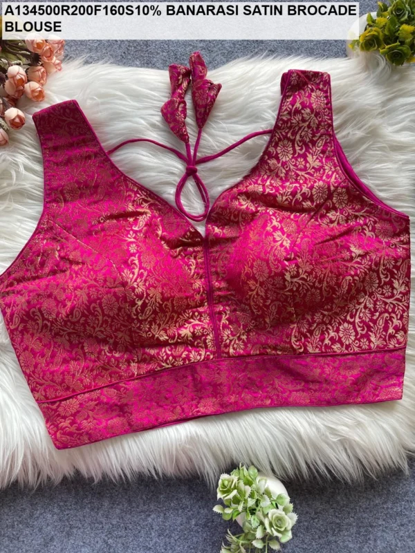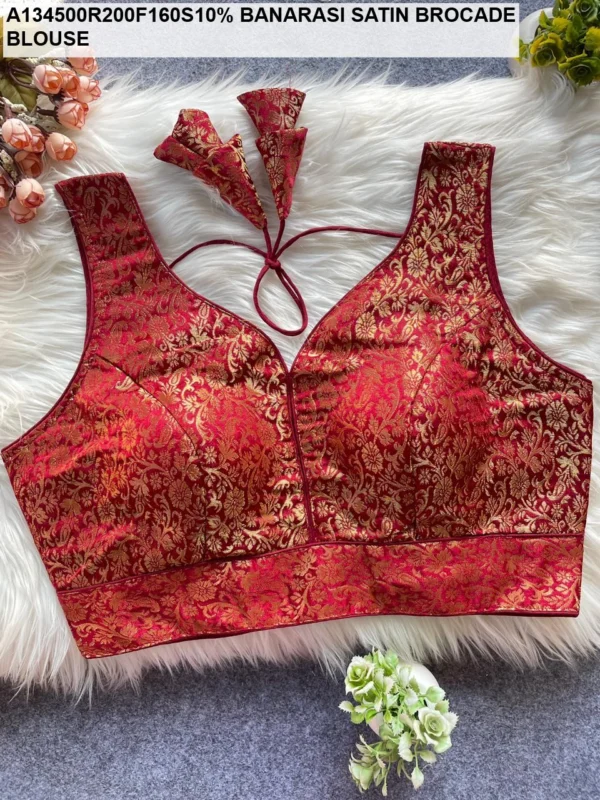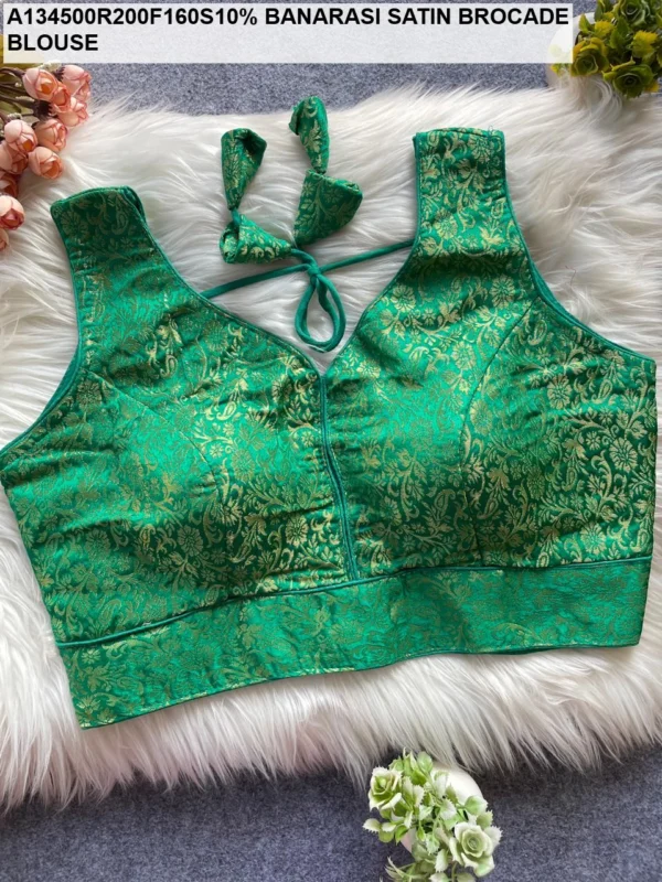 Step into the spotlight with our Banarasi Satin Brocade Blouse from the exclusive Jaal Jacquard catalogue. Priced at an incredible ₹455, this blouse is designed for the modern woman who appreciates the “simple & sober” aesthetic without compromising on the royal feel of traditional Banarasi weaves. Crafted from premium Satin Silk, this blouse offers a high-shine finish and an incredibly soft texture that feels like a second skin.