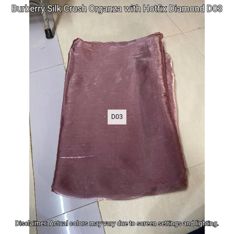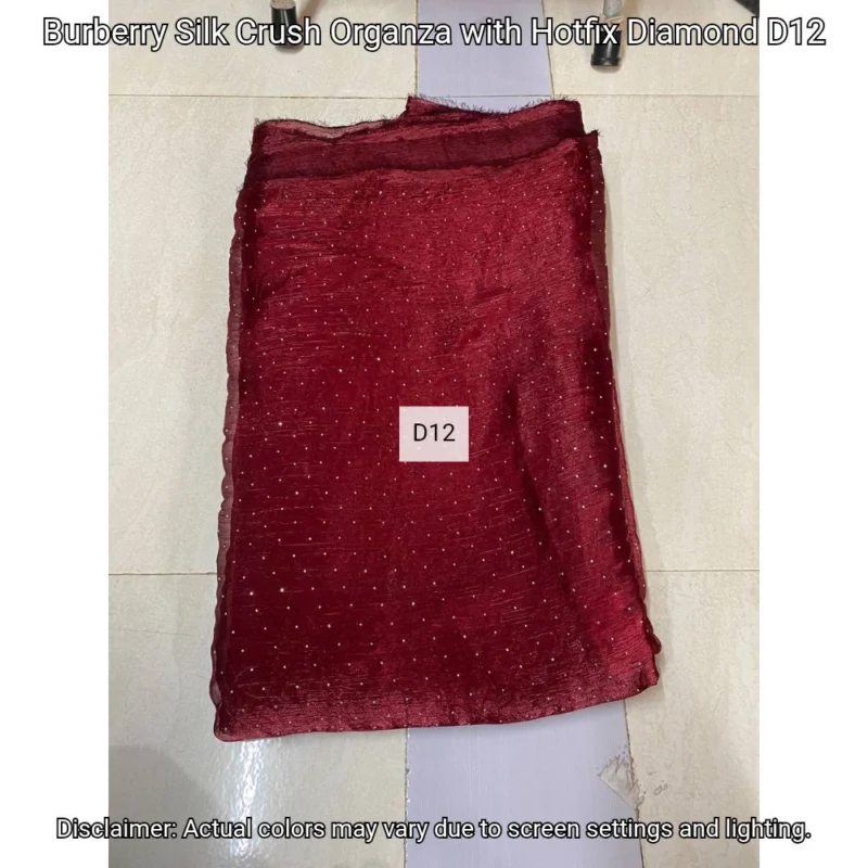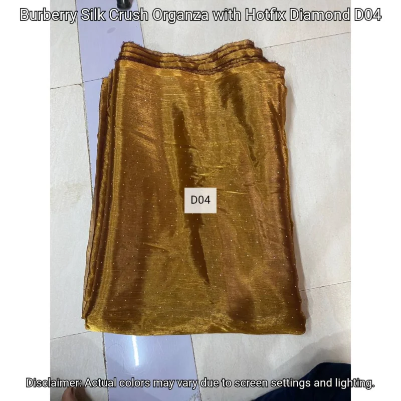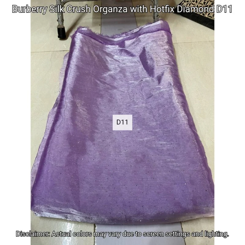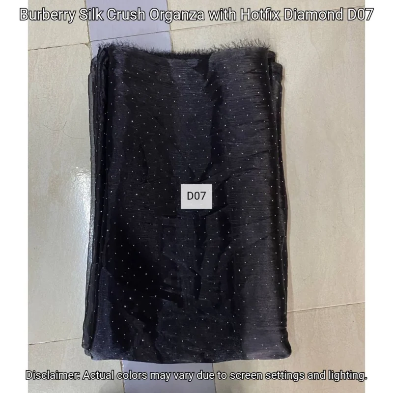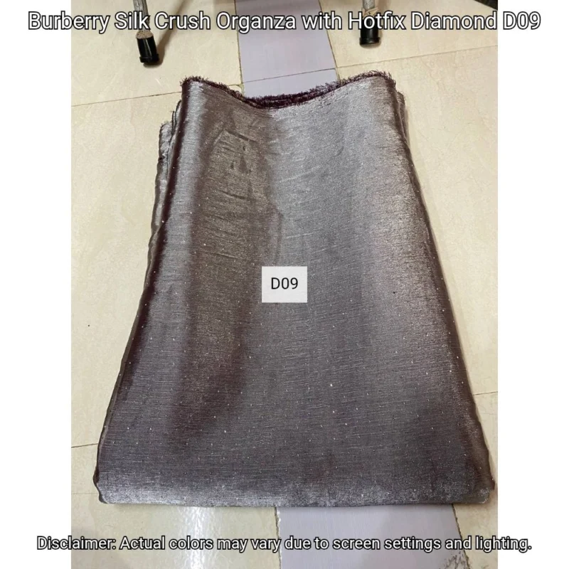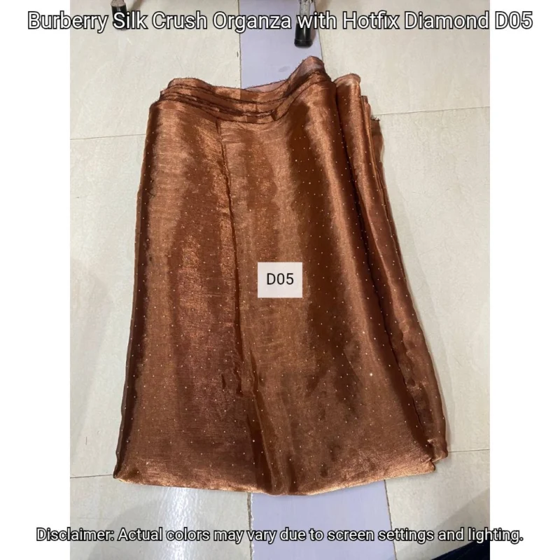 Discover Burberry Silk Crush Organza with hotfix diamonds. Luxurious 44” fabric perfect for elegant designs. Shop now at Bollywood Fabric Store!