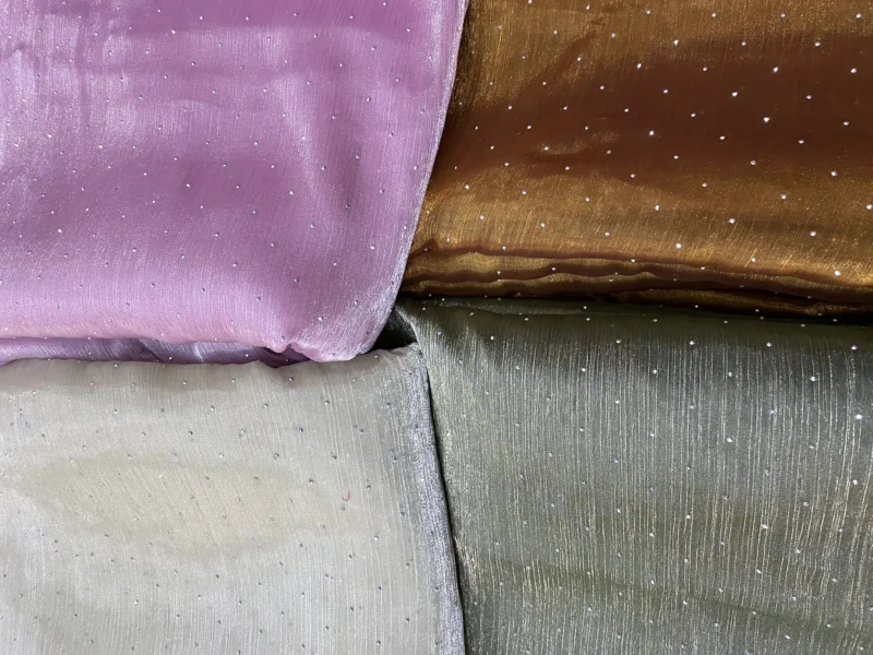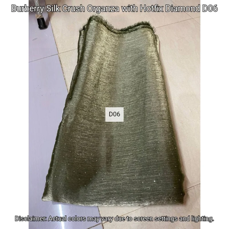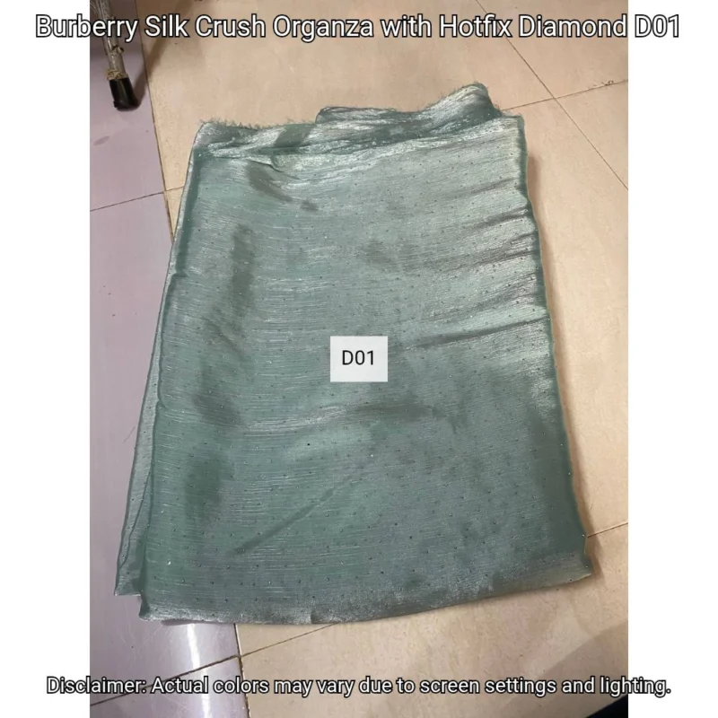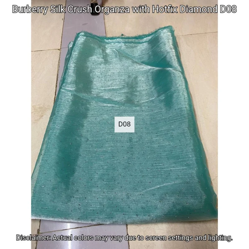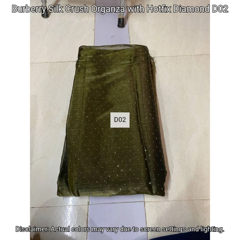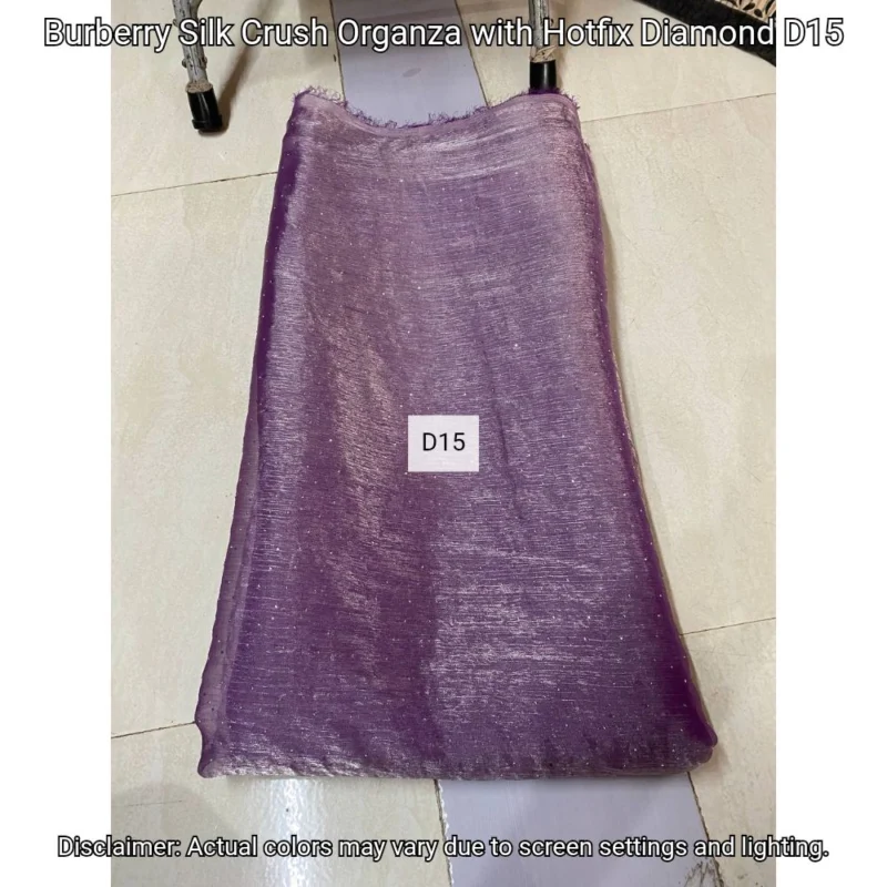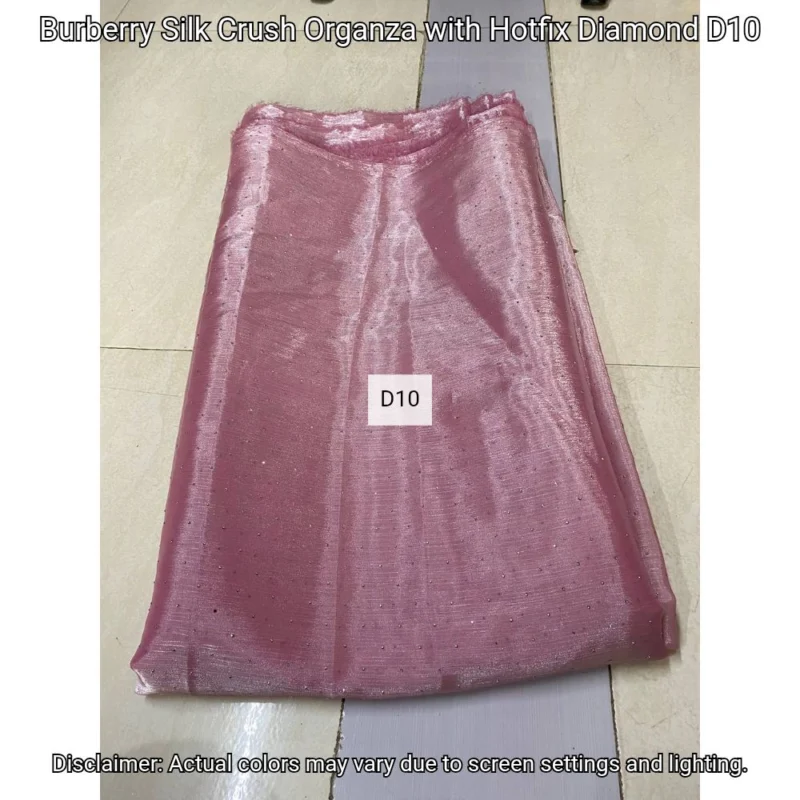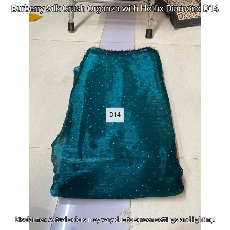 Discover Burberry Silk Crush Organza with hotfix diamonds. Luxurious 44” fabric perfect for elegant designs. Shop now at Bollywood Fabric Store!