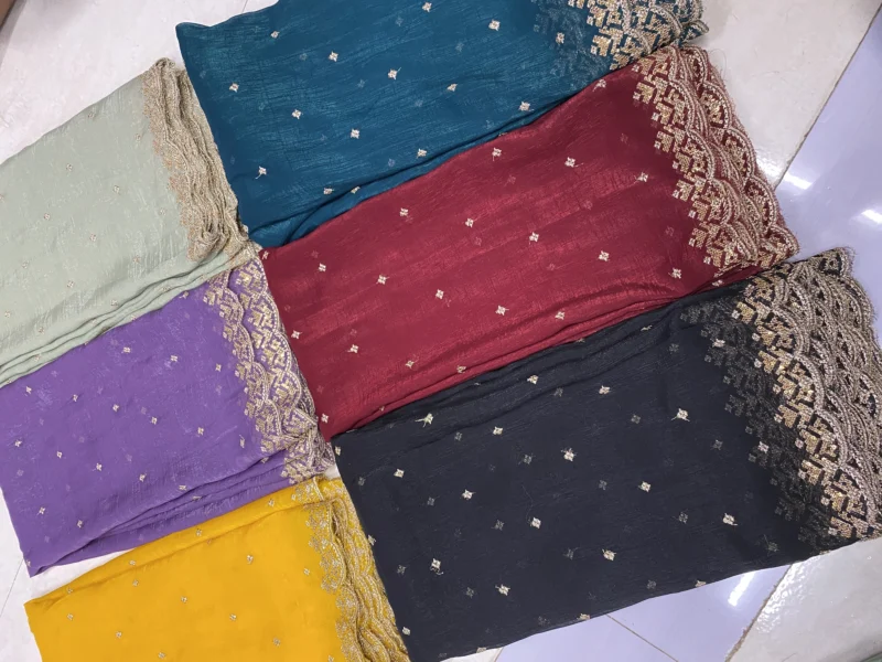 Introducing our exquisite Crunchy Silk Dupatta, a perfect blend of tradition and elegance. Crafted with precision, this 2.5-meter-long dupatta features intricate two-sided cutwork borders, adding a touch of sophistication to your attire. Available in six vibrant colors, it’s designed to complement a variety of outfits, making it a versatile addition to your wardrobe.