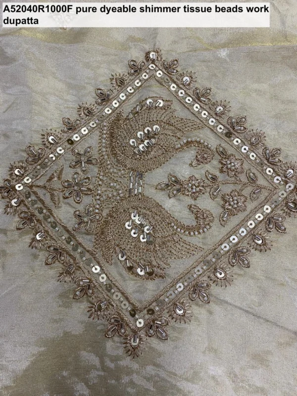 Elevate your style with the unparalleled beauty and customization potential of our **Pure Dyeable Shimmer Tissue Silk Fabric Dupatta (A1311280)**. Its blend of traditional buttis, modern cutwork, and luxurious silk makes it an ideal choice for weddings, festive occasions, or any event where you wish to make a sophisticated statement.