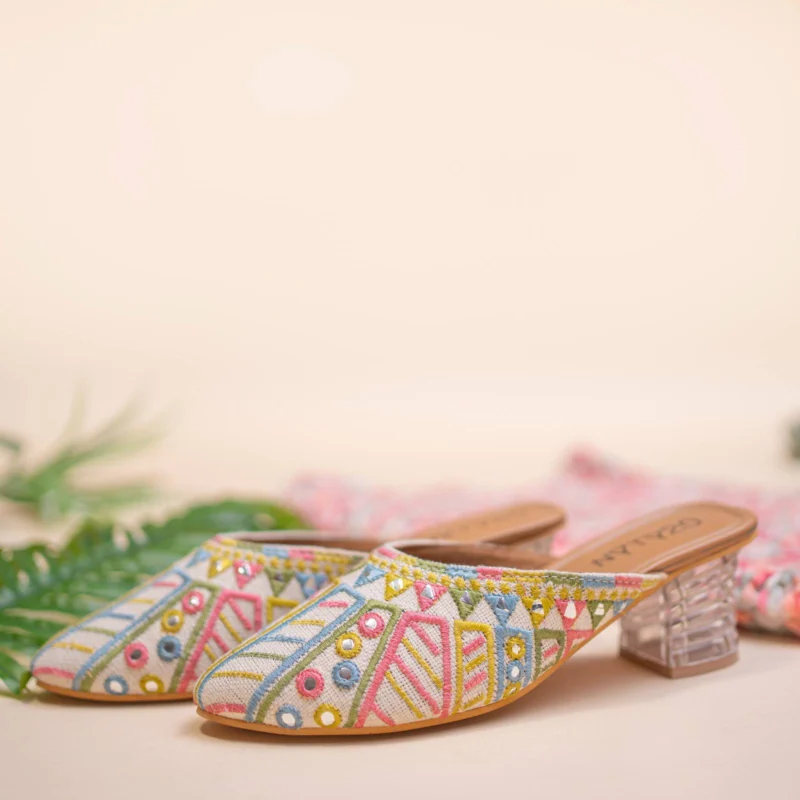 New Collection: Luxurious Embroidery Work Heels with Leather Finish Comfort