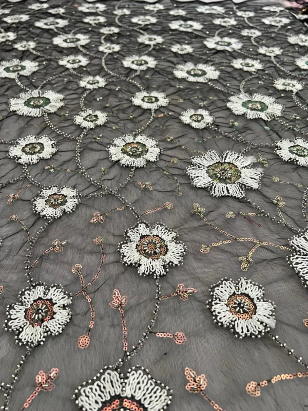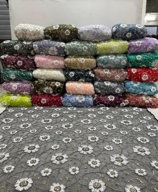 Embrace elegance and sparkle. Shop our Imported Net Fabric with Heavy Hand Work Cut Dana today and bring your dream designs to life!