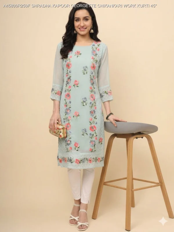 Embrace Bollywood Elegance: Shradha Kapoor Inspired Georgette Chikankari Kurti