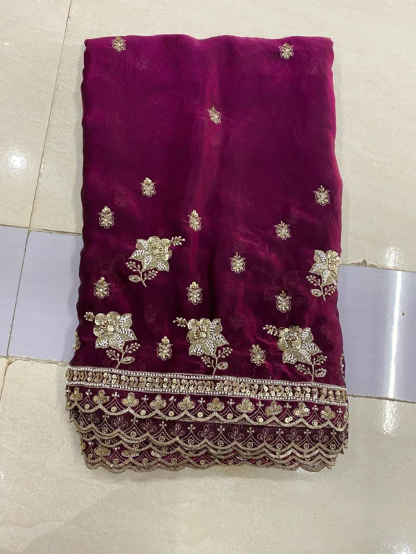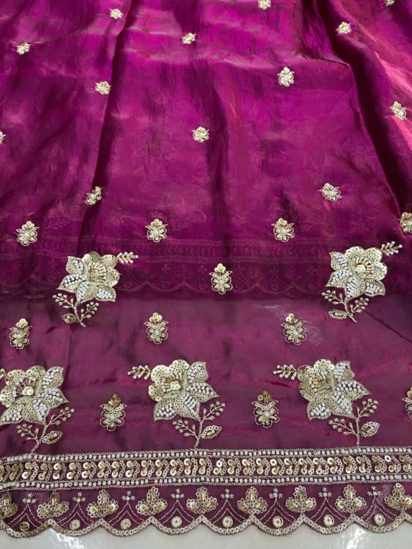 ✨ Introducing the Designer Magenta Space Silk Fabric with Cutwork & Handwork Butties
