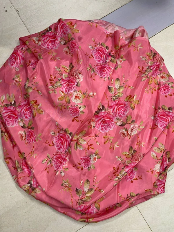 peach colour habotai silk with floral digital print 6.5m for saree or gown