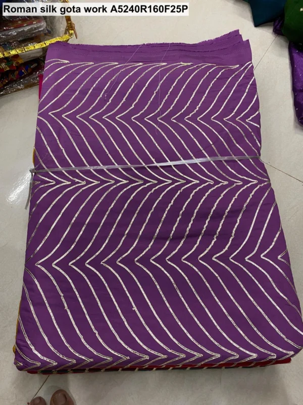 Discover the perfect blend of tradition and modernity with our Roman Silk Gota Patti Work Fabric. Priced at just ₹200 per meter, this fabric is an exceptional choice for creating high-end ethnic ensembles that exude elegance and royalty. Roman Silk, known for its dense weave, substantial hand-feel, and luxurious natural sheen, provides the ultimate canvas for the timeless artistry of Gota Patti.