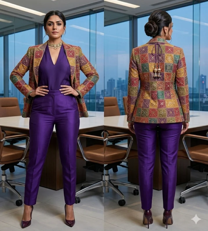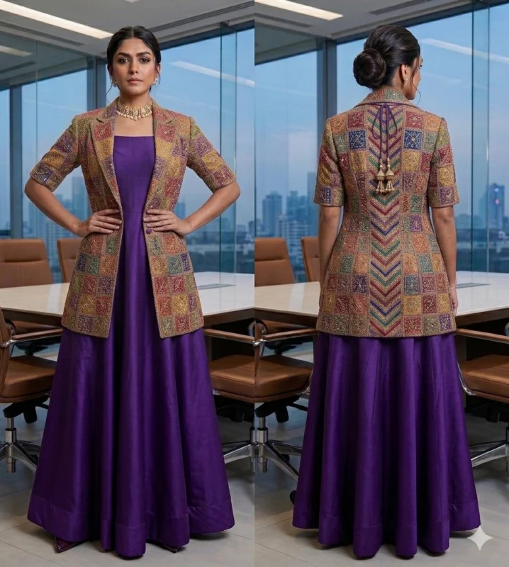 - Indo-Western Outfits: Experiment with fusion wear that highlights the fabric’s rich texture and intricate embroidery.