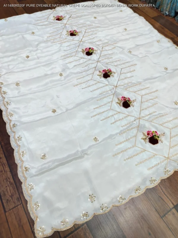 Elevate Your Style: Pure Dyeable Natural Crepe Scalloped Border Dupatta