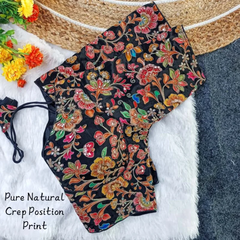 Pure Crepe Sabyasachi Style Position Print Blouse for Party