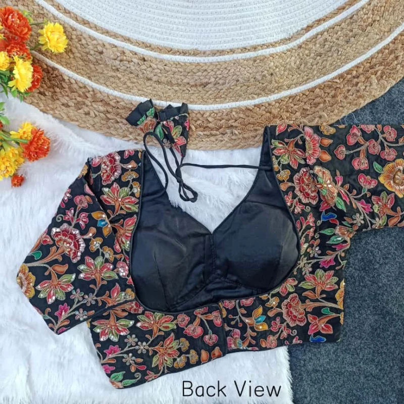 Shop Now! Add this Exclusive Pure Natural Crepe Sabyasachi Style Position Print Taar Codding With Sequence Embroidered Fancy Partywear Blouse to your cart and get ready to turn heads.