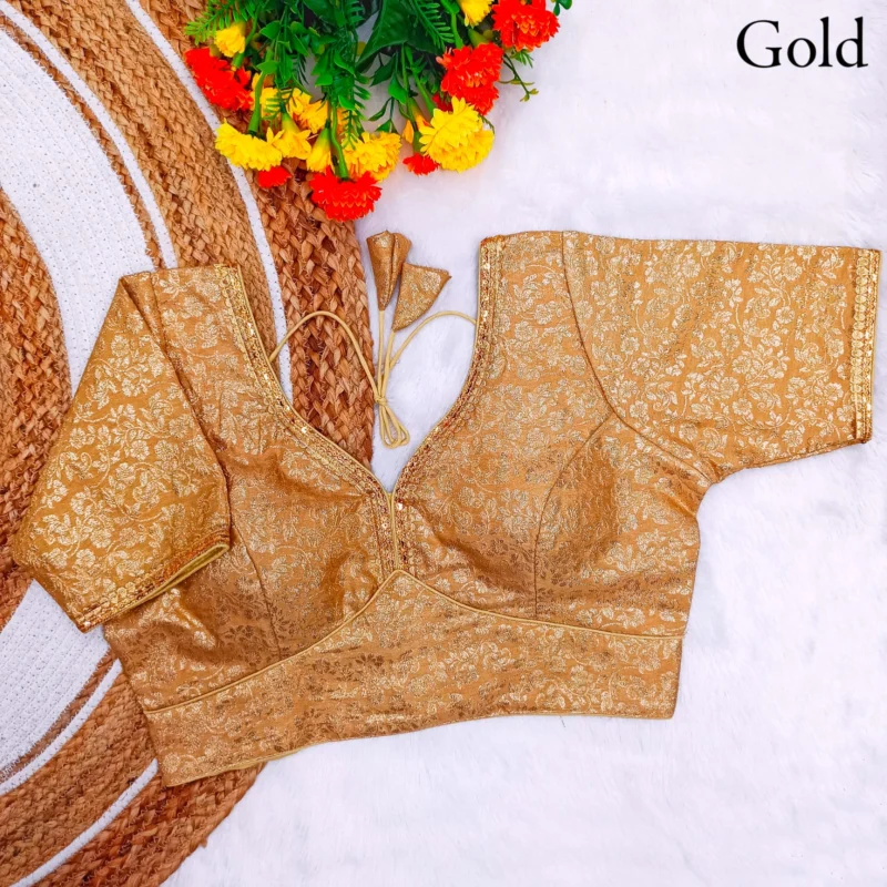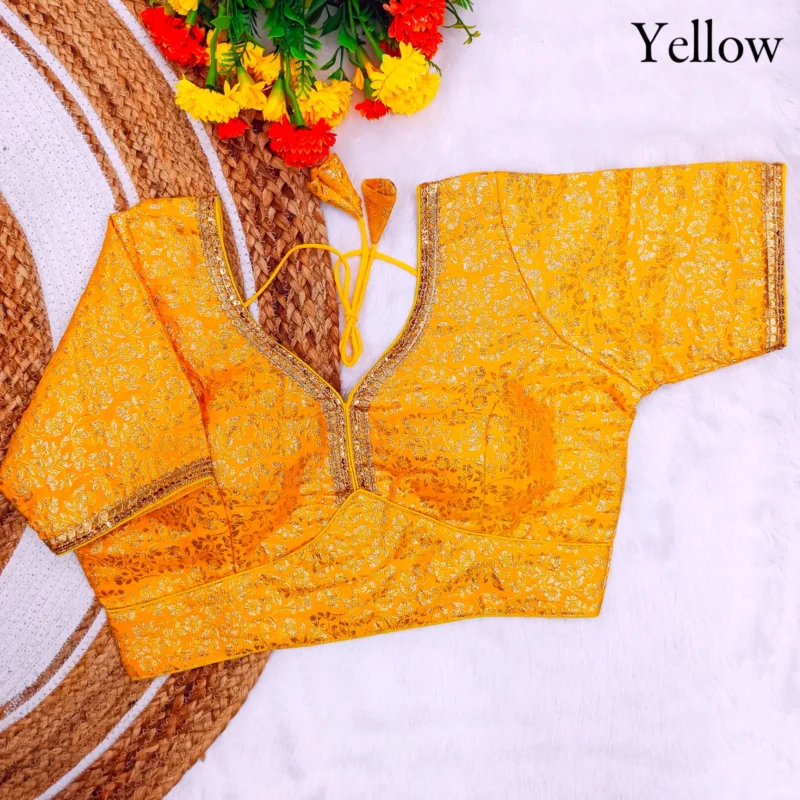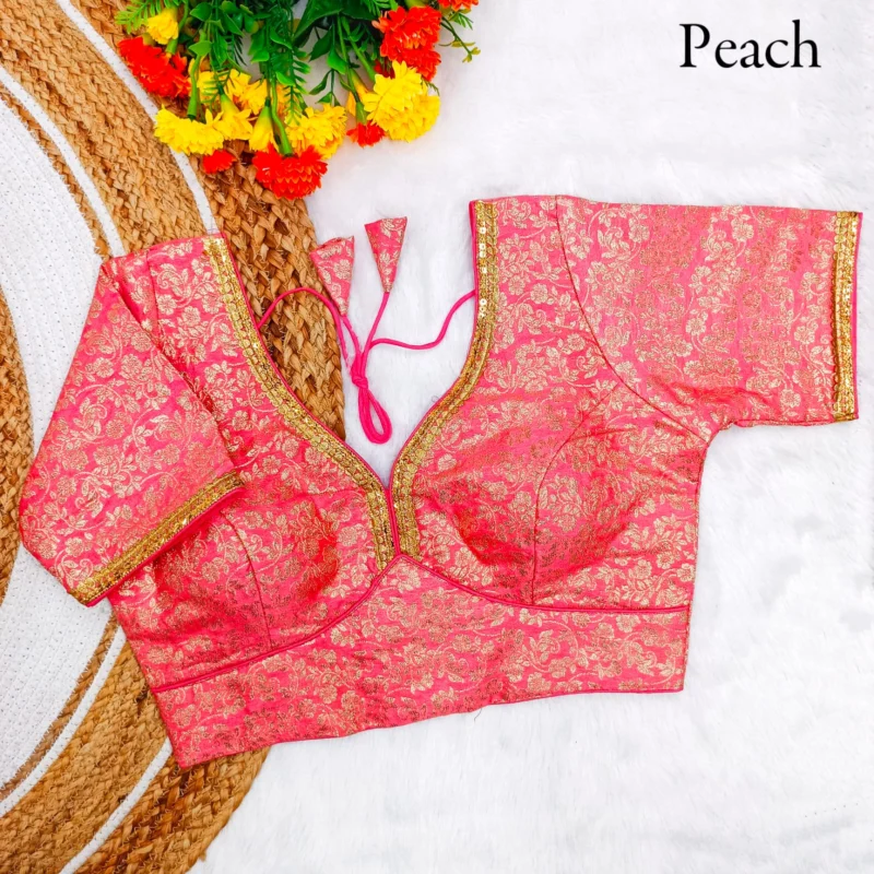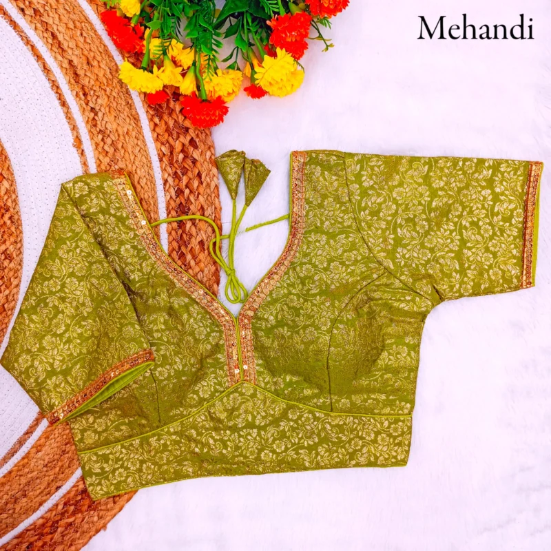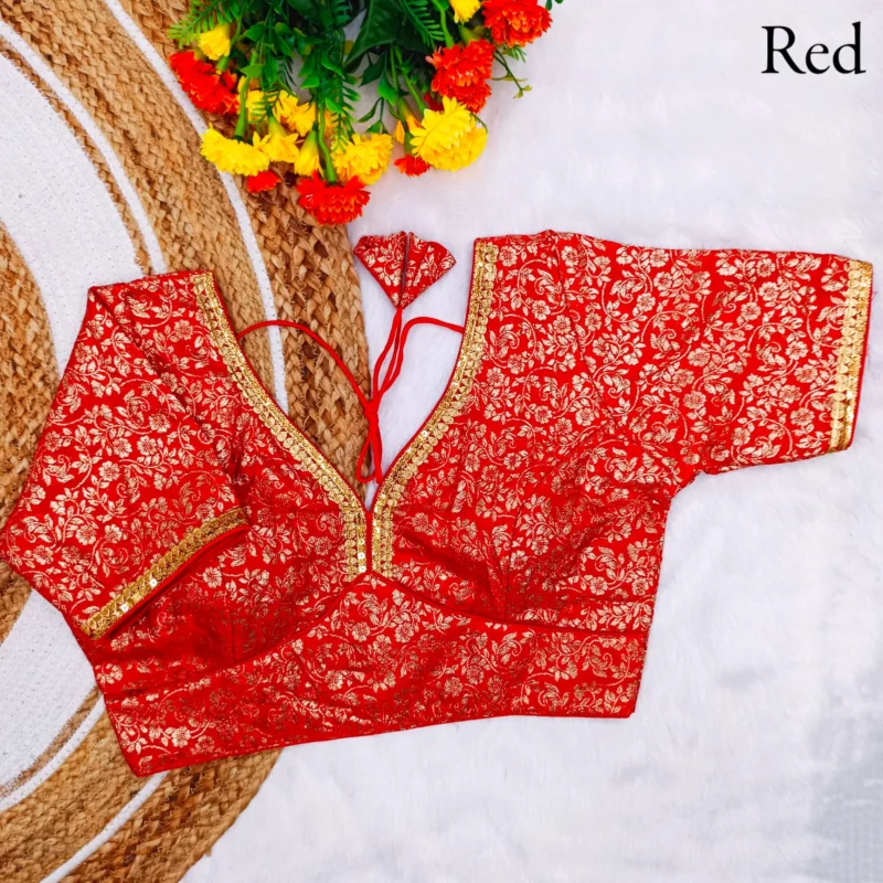 - Work: Featuring Fabric Weaving Jari Work, this blouse stands out with its intricate detailing and shimmering beauty.