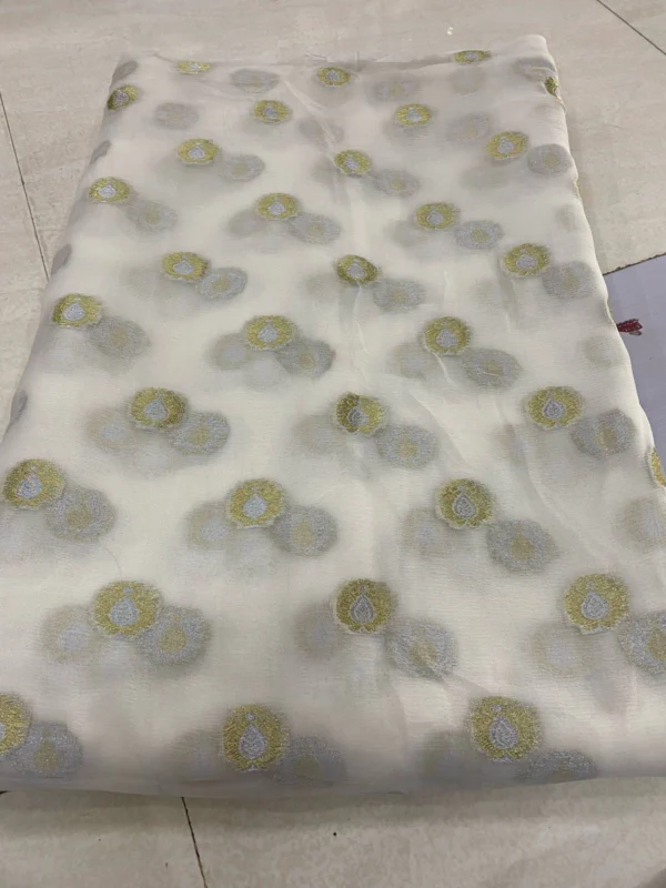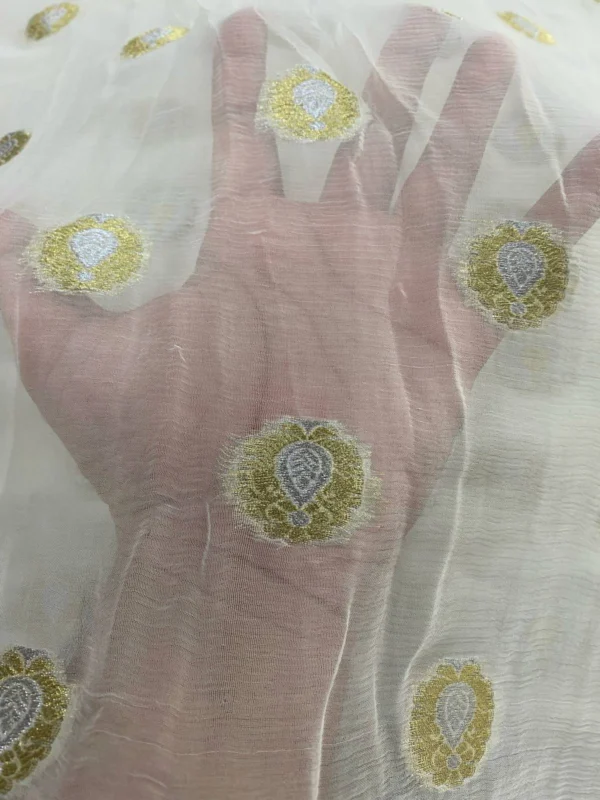 Pure Dyeable Chiffon Banarasi Butta Fabric – Golden Silver Zari