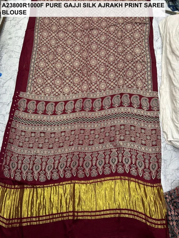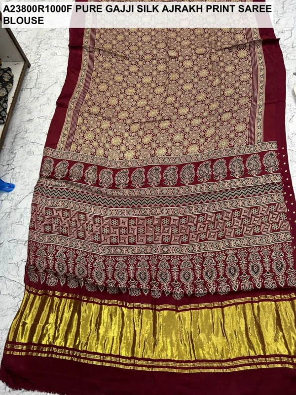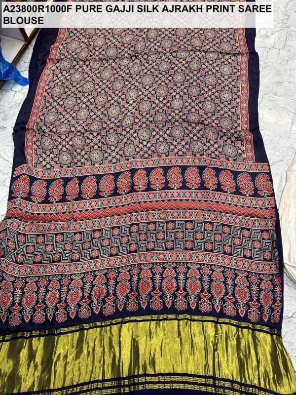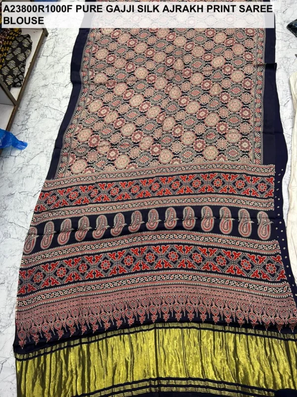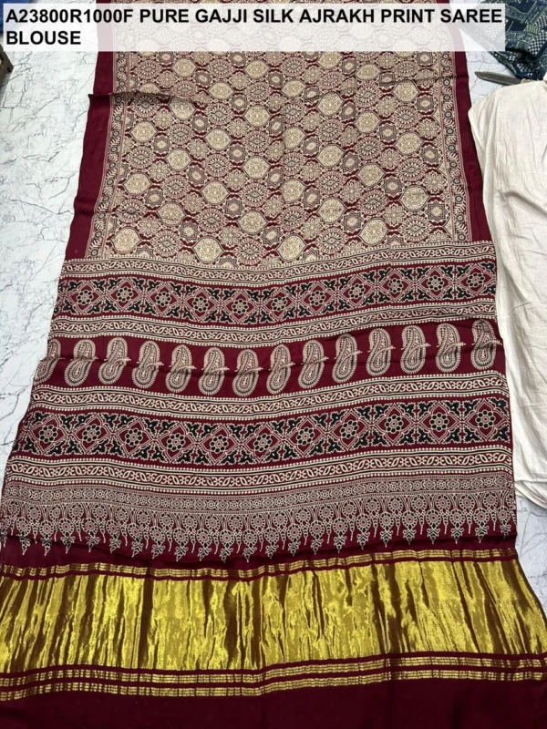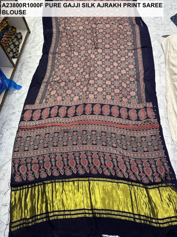 Pure Gajji Silk Ajrakh Print Saree with Blouse – ₹2400