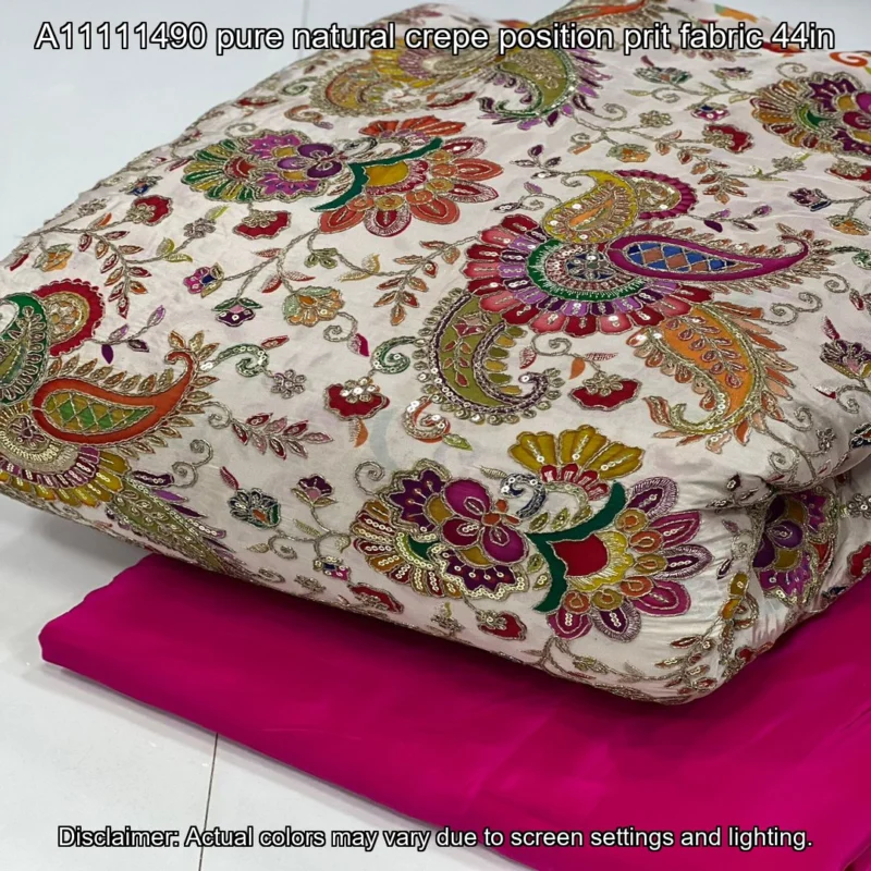 Pure Natural Crepe Fabric with Position Print & Embroidery: Elegance Redefined