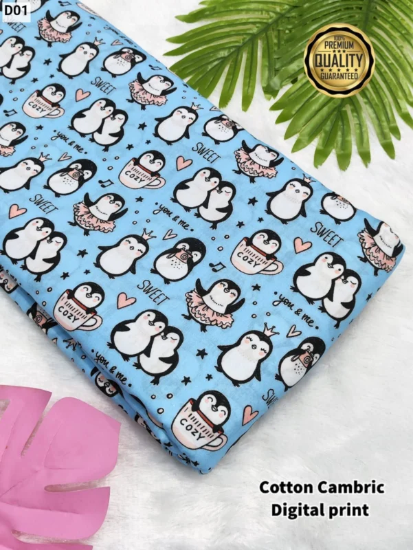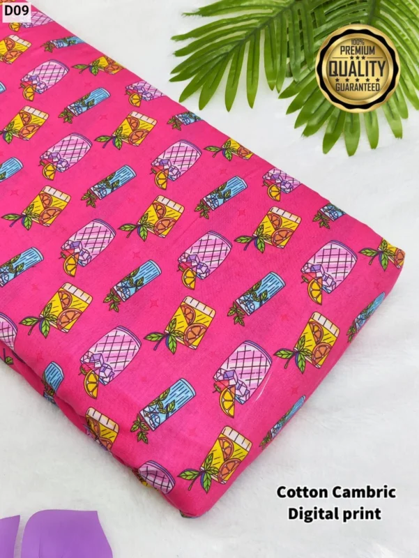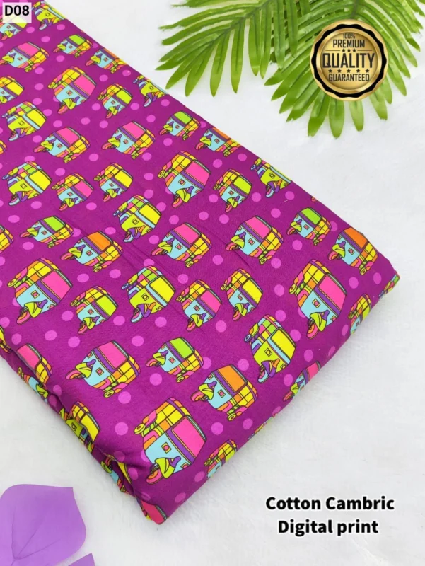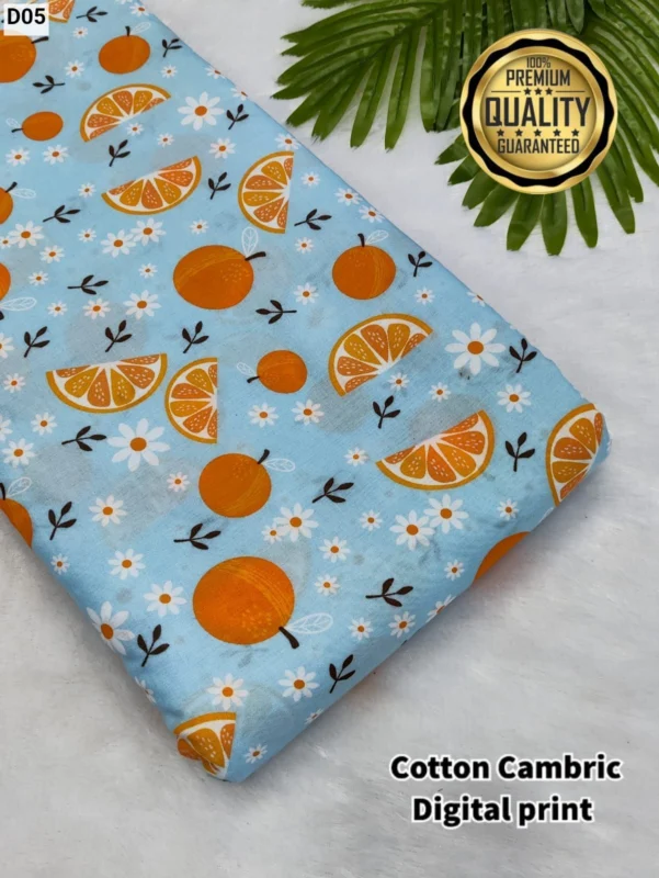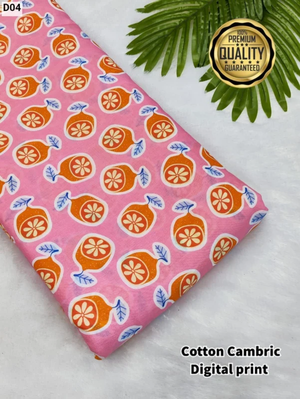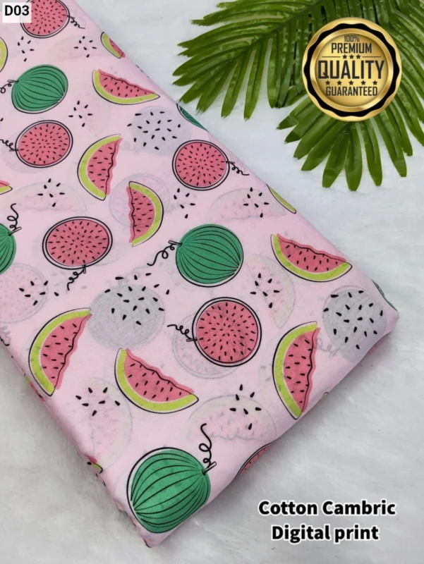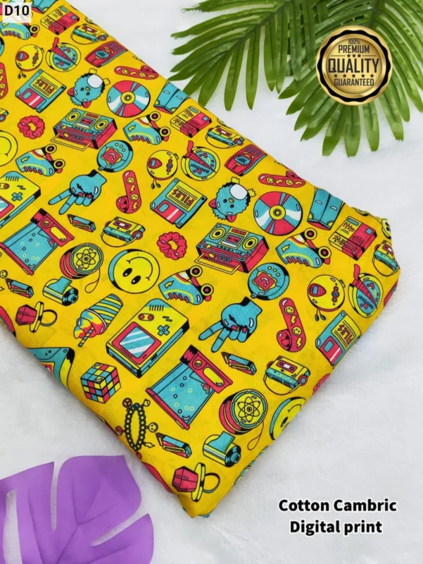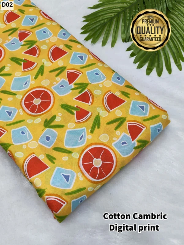 Soft, smooth digital print Cambric Cotton fabric (42 inch). Perfect for all seasons. Get comfort & style at ₹200/meter. Shop now!