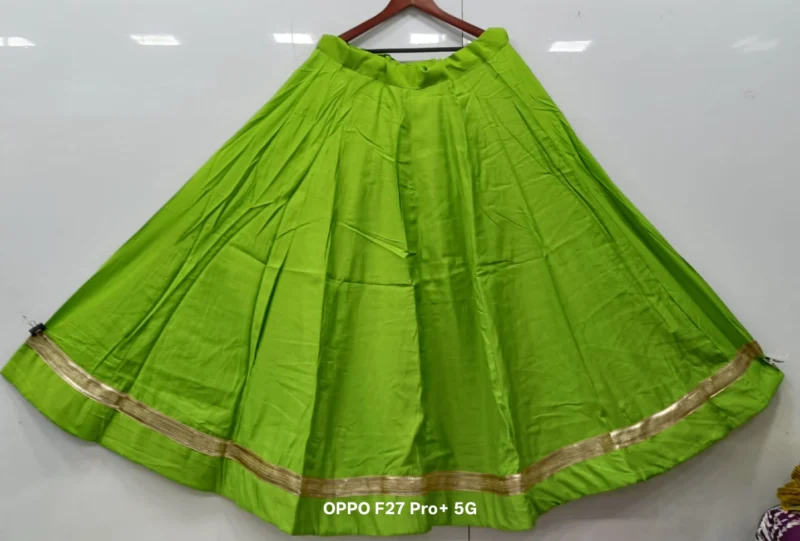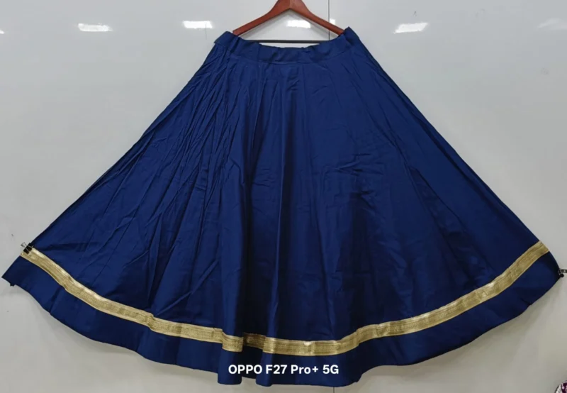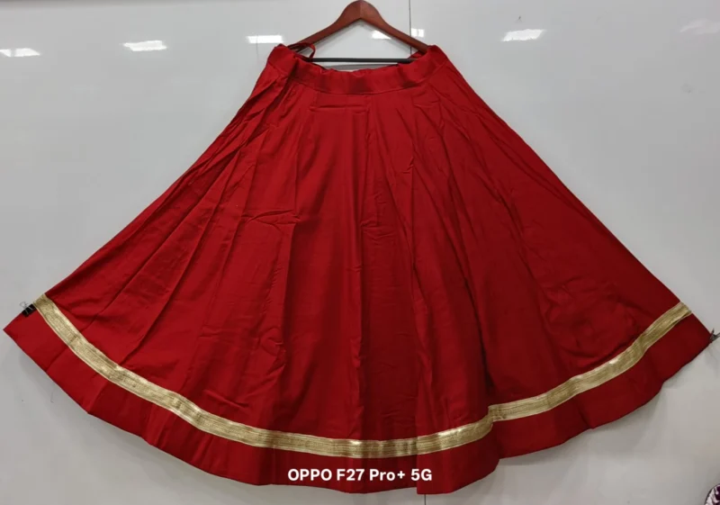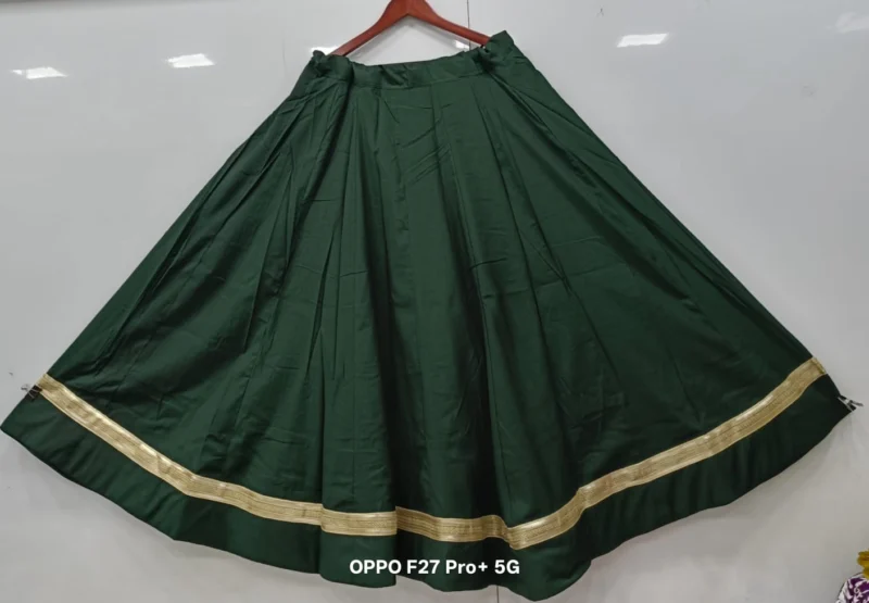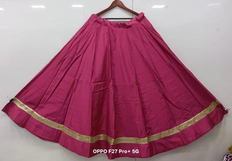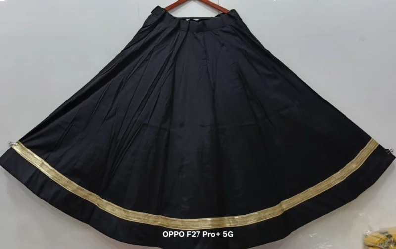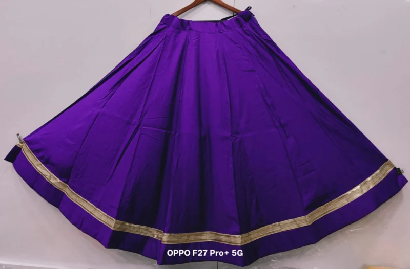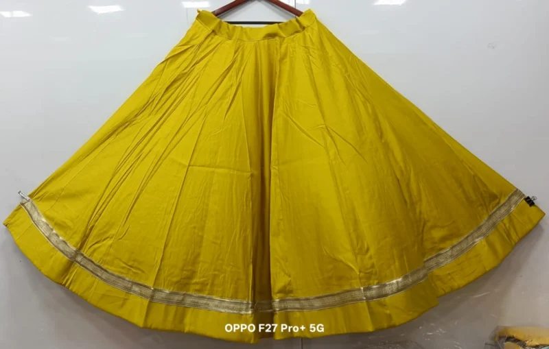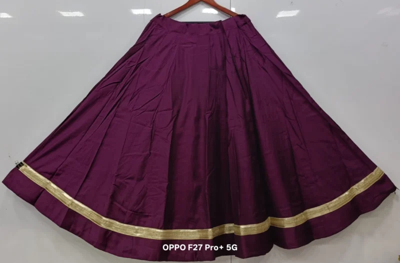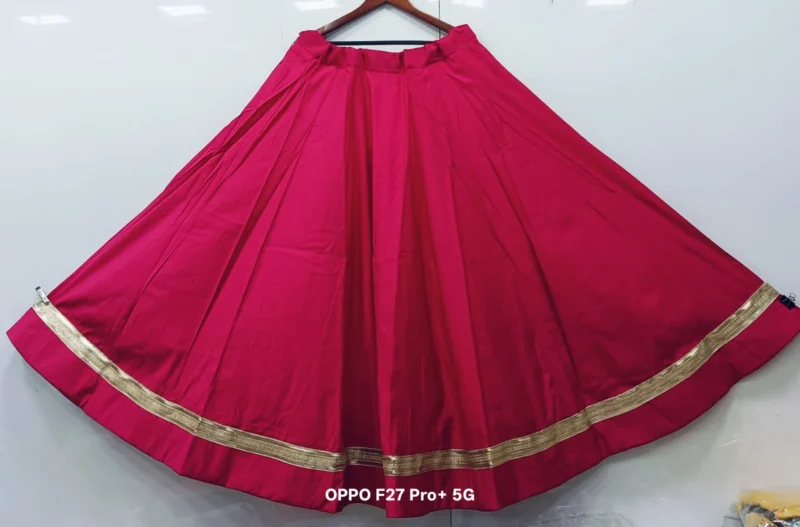 Fabric Detail: The lehenga is crafted from premium Roman Silk, a fabric known for its exceptional smoothness, durability, and lustrous finish. This silk is much-loved for its ability to hold voluminous pleats, which is crucial for achieving that magnificent 6-meter flair. It drapes beautifully while resisting excessive wrinkling, keeping you looking fresh throughout the festivities. Inside, the lehenga is lined with high-quality fabric and a canvas patta (if applicable) to maintain the perfect, voluminous shape.