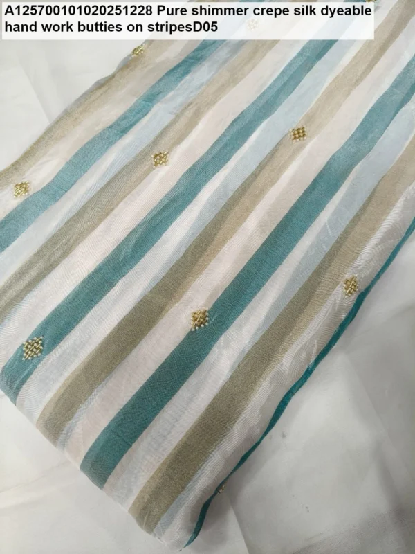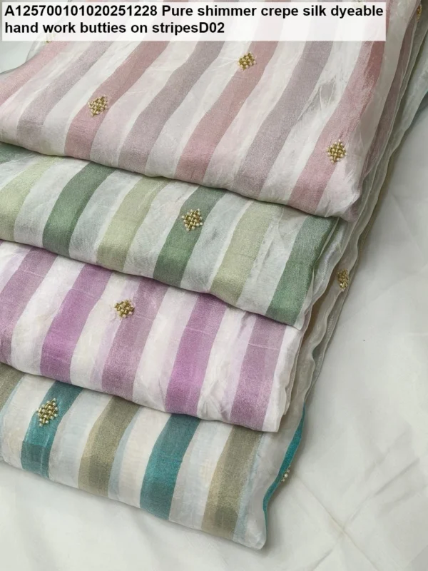 🌟 Discover Dazzling Elegance: Pure Shimmer Crepe Silk Dyeable Fabric with Handwork Butties