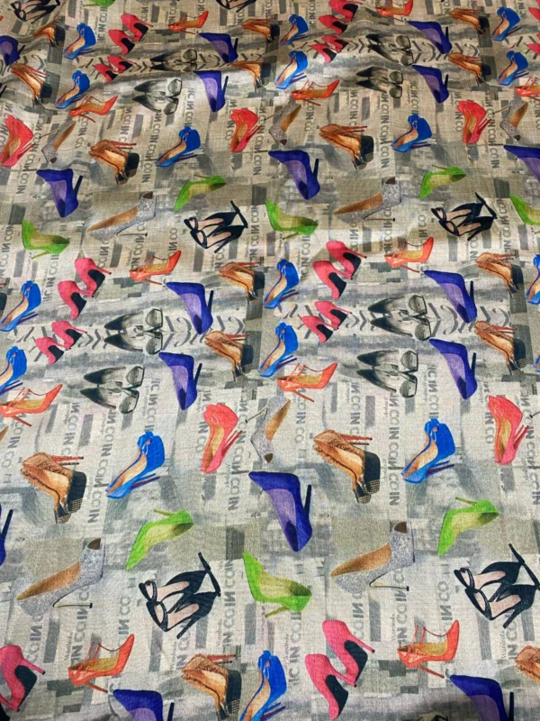 soft tussar silk with digital print of sandals design, used for ladies kurti, lehenga skirts, blouse, suits. gents kurta also