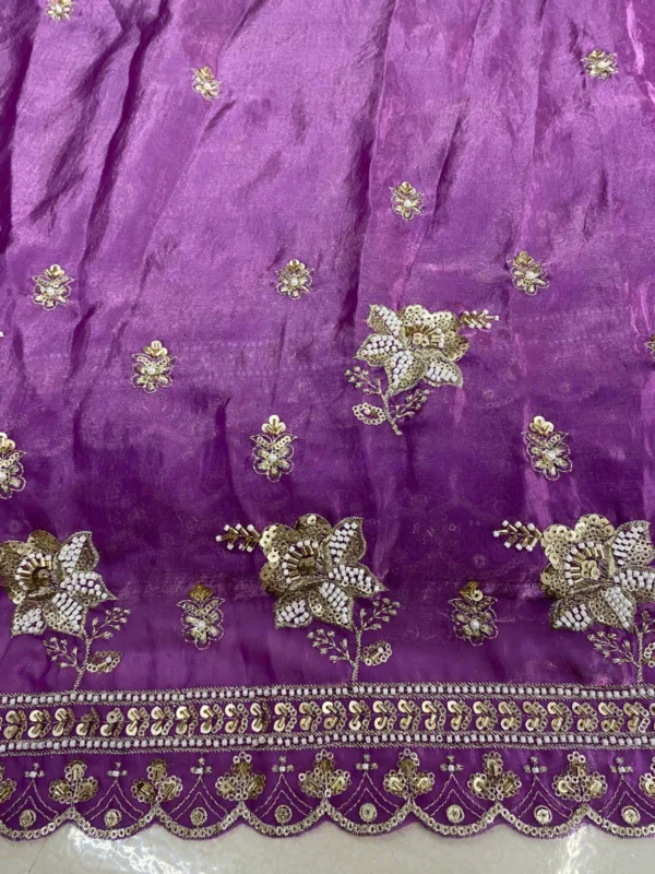 Step into a world of celestial glamour with our latest addition: the **Luvander Space Silk Fabric with Handwork Beads Daman**. This premium material is meticulously crafted for designers and fashion enthusiasts looking to create breathtaking ethnic ensembles like a dazzling **Lehenga Choli** or an elegant designer gown. The fabric’s luxurious, soft sheen, combined with the stunning traditional craftsmanship, makes it an absolute must-have for the upcoming wedding and festive season.