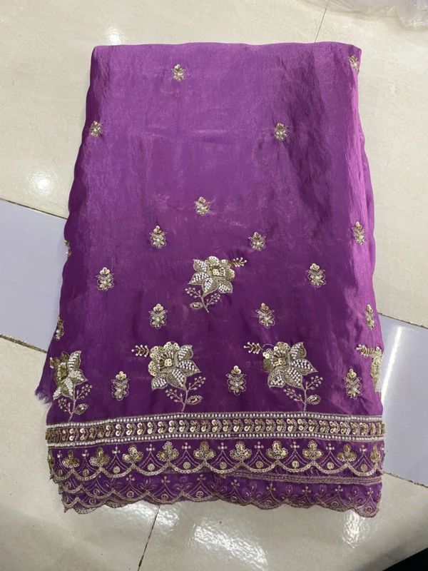 - Care: Due to the delicate handwork, **Dry Clean Only** is highly recommended to maintain the fabric’s sheen and the integrity of the bead and daman work.