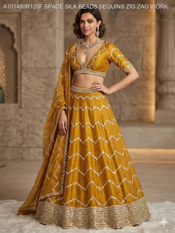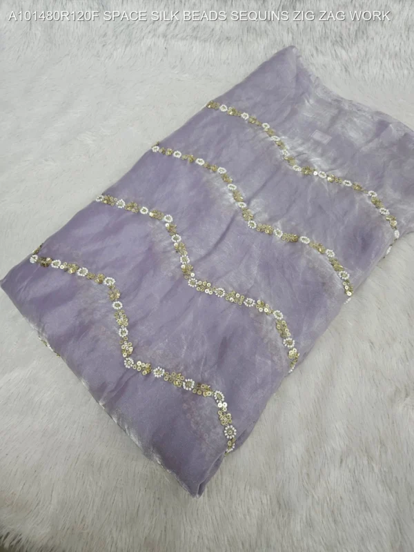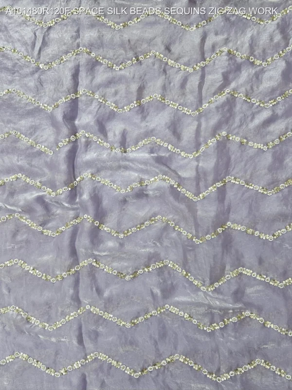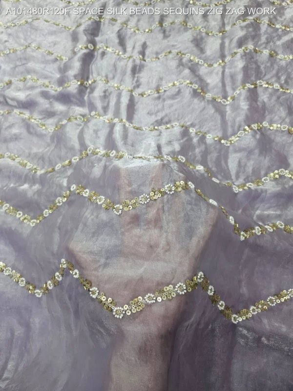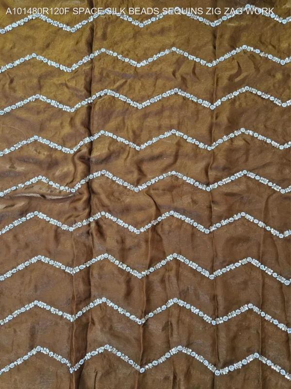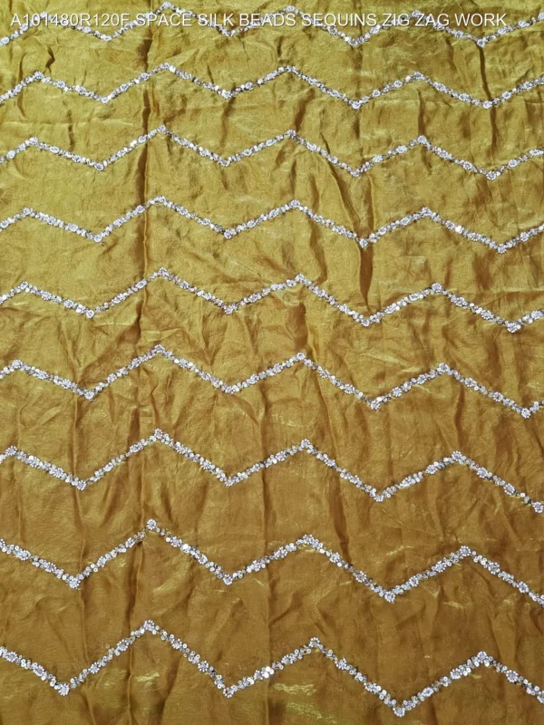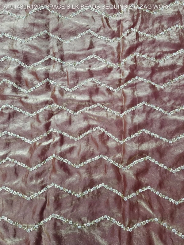 Elevate your ethnic wardrobe with our exquisite Space Silk Fabric featuring intricate Zig Zag Bead and Sequin Work. This premium fabric is designed for those who appreciate the fine balance between traditional craftsmanship and modern silhouettes. The unique “Space Silk” base offers a luxurious sheen and a smooth, fluid drape, making it the perfect canvas for high-end fashion creations.