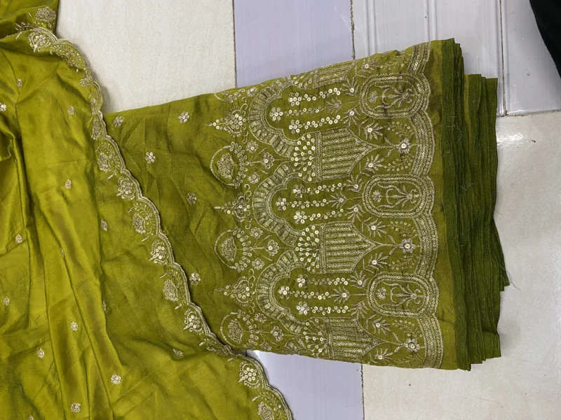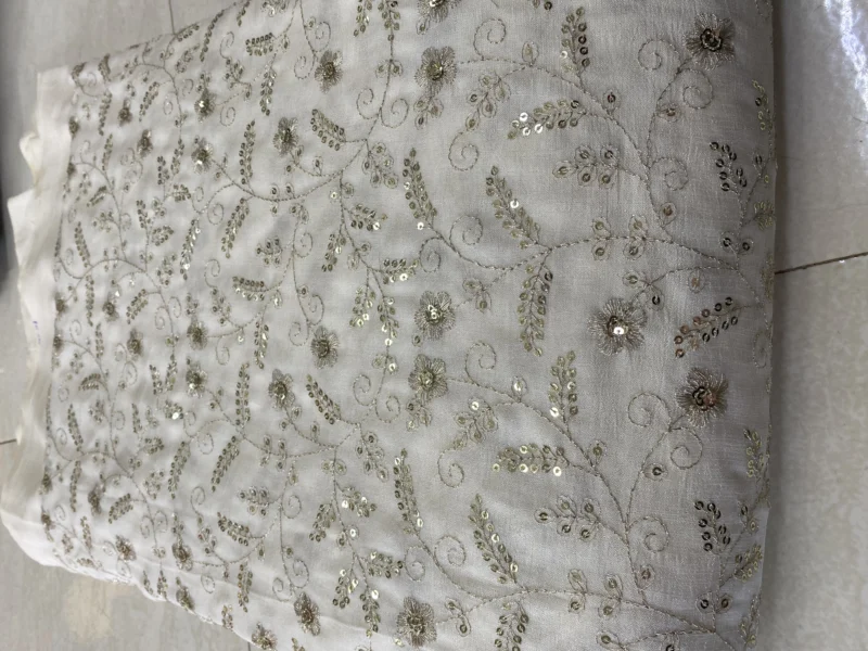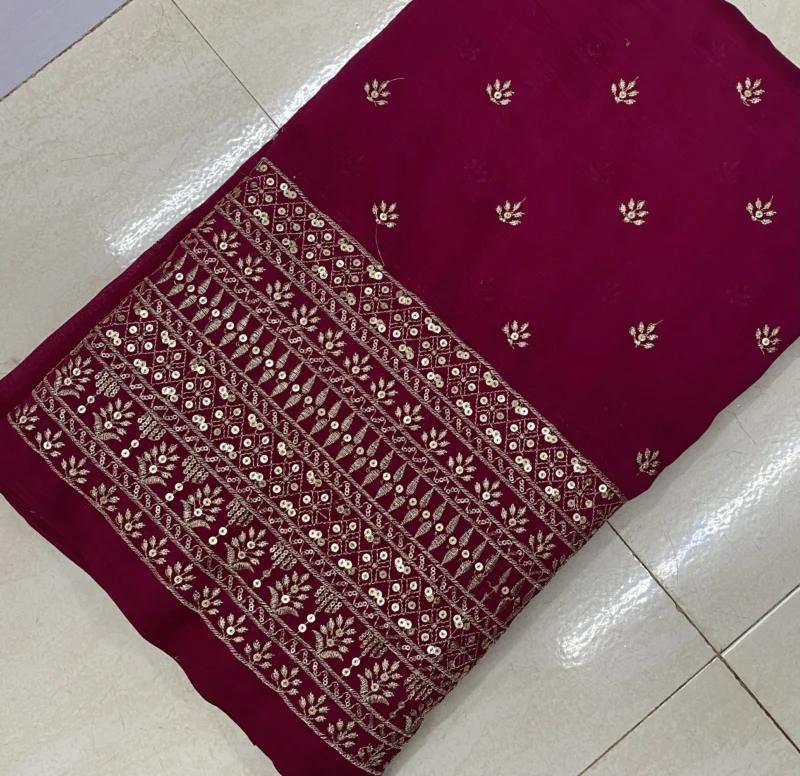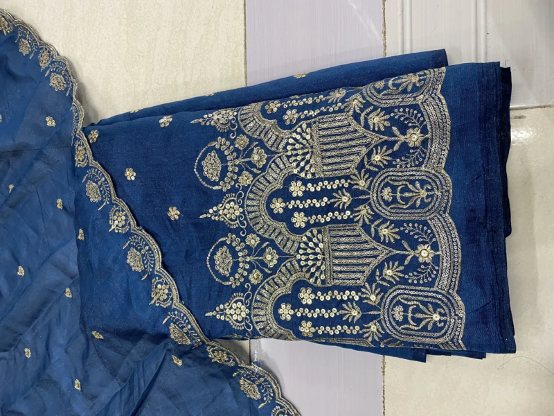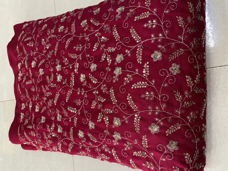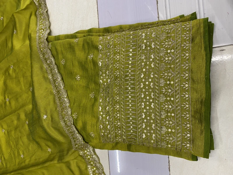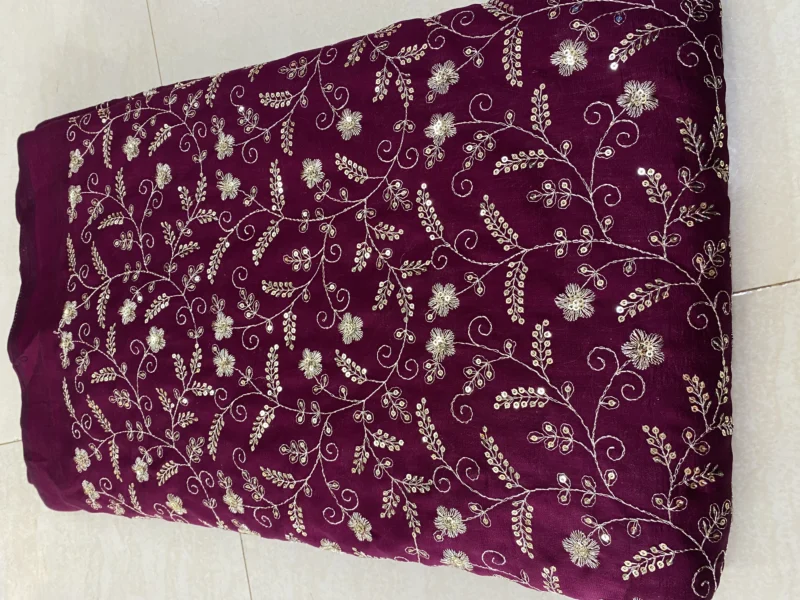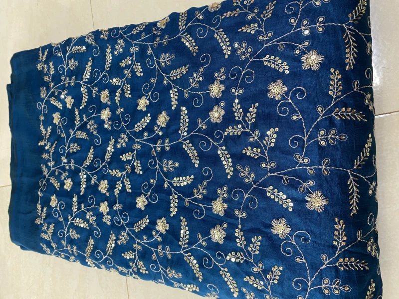 Elevate your fashion creations with our exquisite Vichitra Silk Fabric, adorned with traditional Leheriya patterns and shimmering sequin embroidery. This fabric seamlessly blends cultural heritage with contemporary elegance, making it an ideal choice for festive and formal attire.