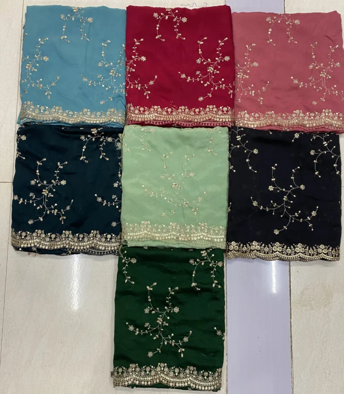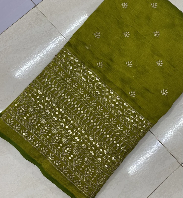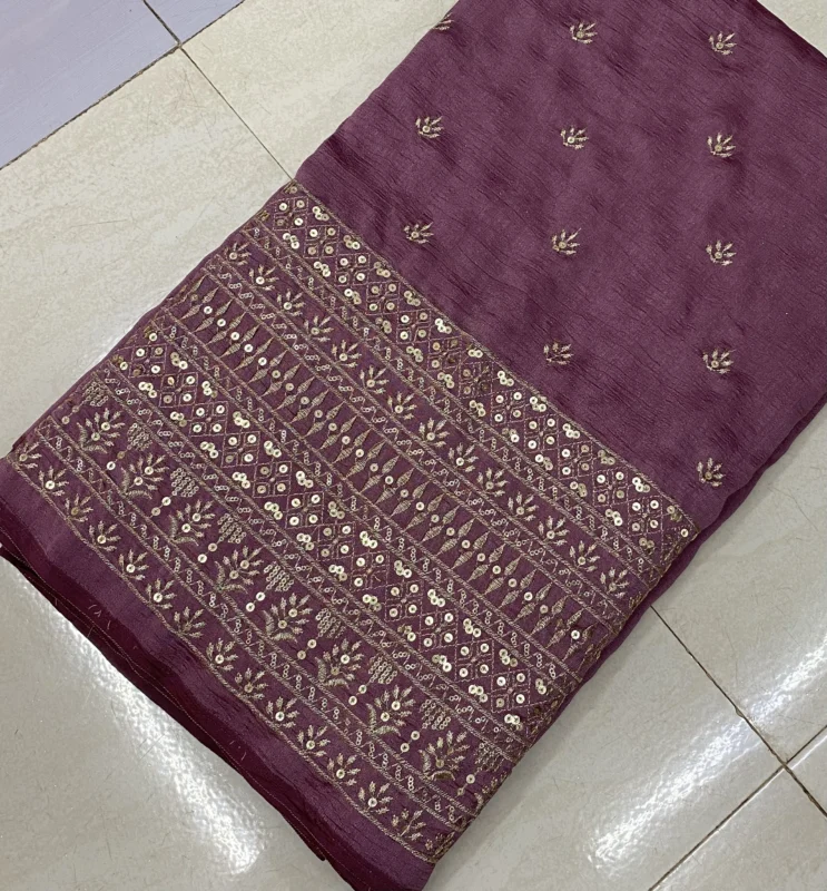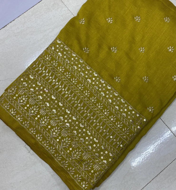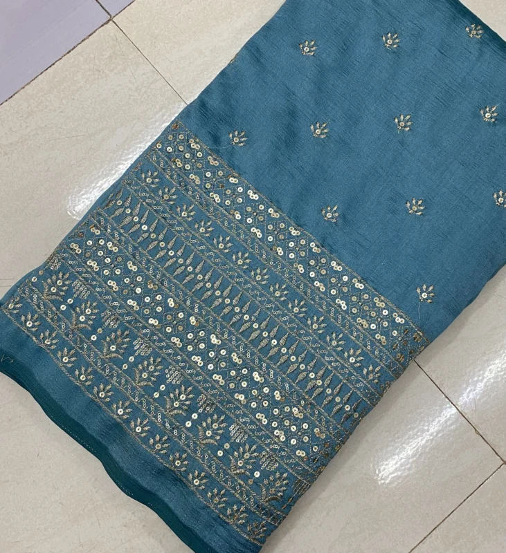 Vichitra Silk Fabric with Leheriya Style Sequin Embroidery