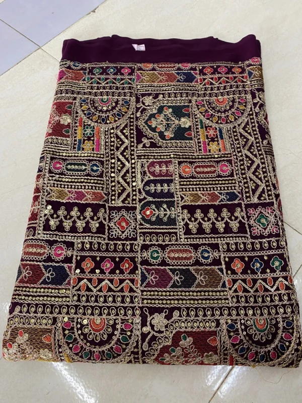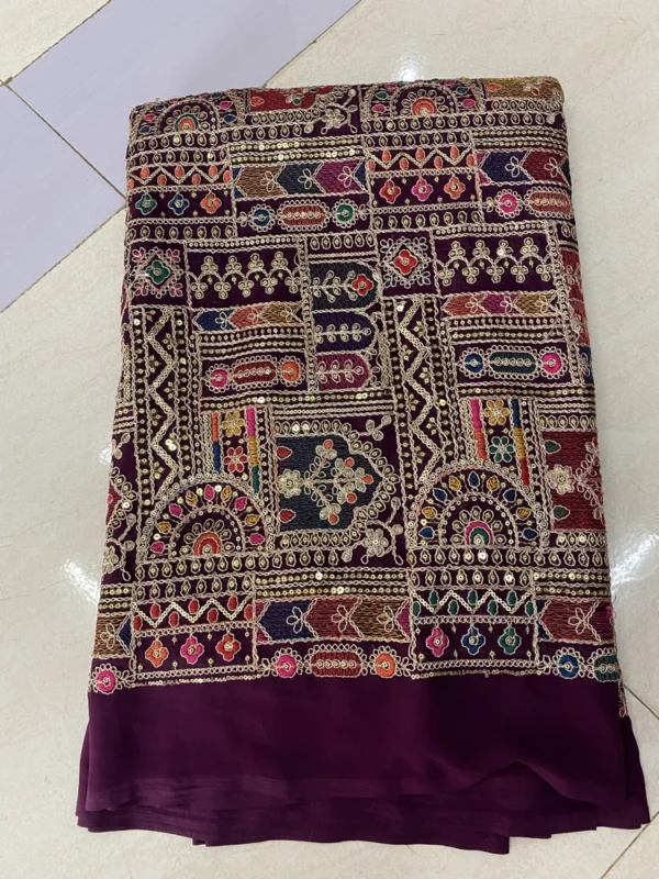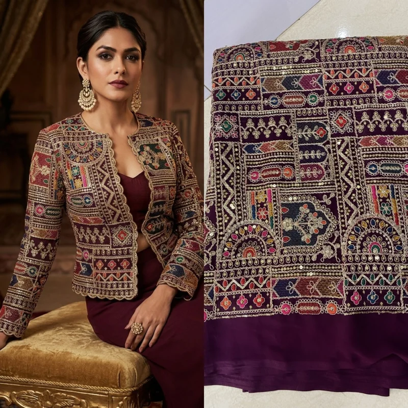 Embrace the fusion of tradition and trend with this stunning Vintage Indian Ethnic Work Georgette Fabric. Its unique blend of colours, luxurious feel, and breathtaking embroidery make it a must-have for anyone looking to create truly remarkable pieces. Don’t miss the opportunity to transform your vision into reality.