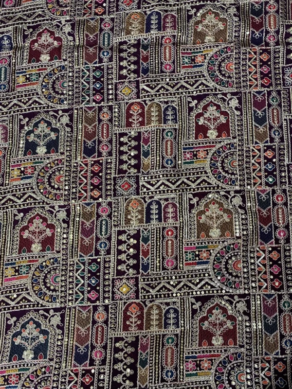 What truly sets this fabric apart is its intricate coding sequence with multi-thread embroidery. This meticulous craftsmanship brings the fabric to life, showcasing a delicate yet striking texture. Each thread is carefully woven to create a detailed pattern that adds depth and dimension, reflecting the skill and dedication of our artisans. The multi-thread work ensures a luxurious feel and a durable finish, promising a garment that will be cherished for years to come.
