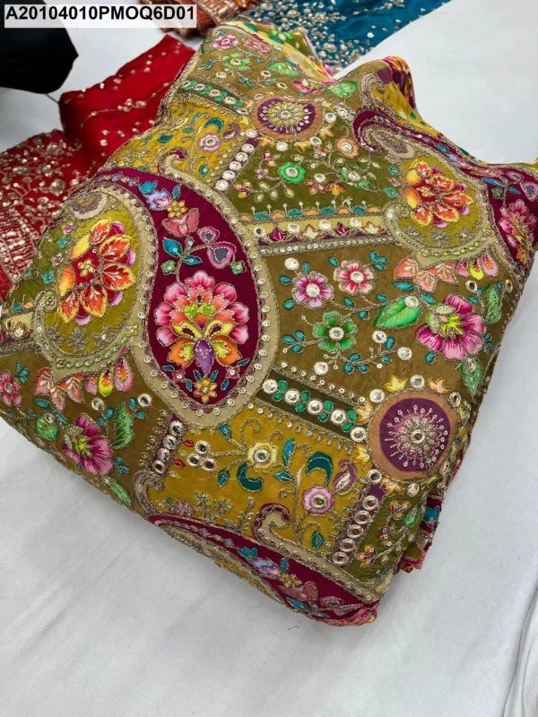What sets this fabric apart is the meticulous technique of **position placement embroidery**. Unlike all-over patterns, the embroidery is strategically positioned—or ‘placed’—to accentuate the printed Keri (paisley) motifs. This results in a curated, three-dimensional look that elevates the garment from simple printed cloth to wearable art. The embroidery adds depth, texture, and a subtle shimmer, catching the light beautifully and highlighting the intricate Keri design.